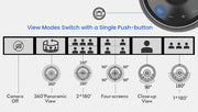 Trường nhìn toàn cảnh 360° hỗ trợ nhiều chế độ màn hình khác nhau, Toàn cảnh 360°, 2*180°, Bốn màn hình, Cận cảnh và 1*180°. Và thật dễ dàng để chuyển đổi chế độ xem chỉ bằng một nút nhấn.